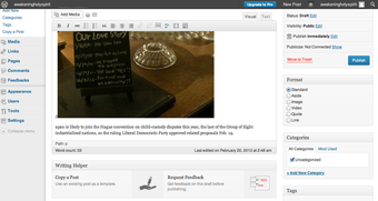 Pixcel Pumperを開き、Word Pressのブログアドレス、ユーザーネーム、パスワードを入力してサインインします。Word Pressと同じく記事のタイトル、本文、画像などを入れたり、フォント、サイズを自在に変更できますが、Word Pressで下書きを書くこととの大きな違いは、それぞれのツールアイコンや表示が大きいところでしょう。